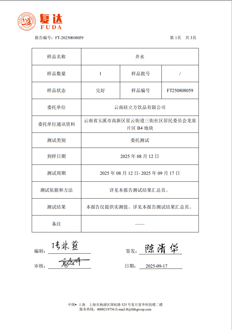 在澄江市帽天山,发现了**的澄江生物群化石,这里被誉为“生命大爆发的生命起源地”。帽天山的地质构造和澄江组岩层水的特殊环境,为古生物的保存提供了**条件,也孕育了多种对人体健康极为有益的天然矿物质成分。澄江组岩层水,经过数亿年的地质过滤和天然净化,保留了最纯净的水质和丰富的矿物质,是大自然6.35亿年来赋予人类的珍贵礼物。也包括了偏硅酸,偏硅酸型饮用水是一种珍贵的天然饮用矿泉水,其偏硅酸含量丰富,具有独特的健康价值。偏硅酸能够有效促进人体新陈代谢,增强骨骼健康,同时对心血管系统也有**的保护作用。也是人体必需的有益矿物质。